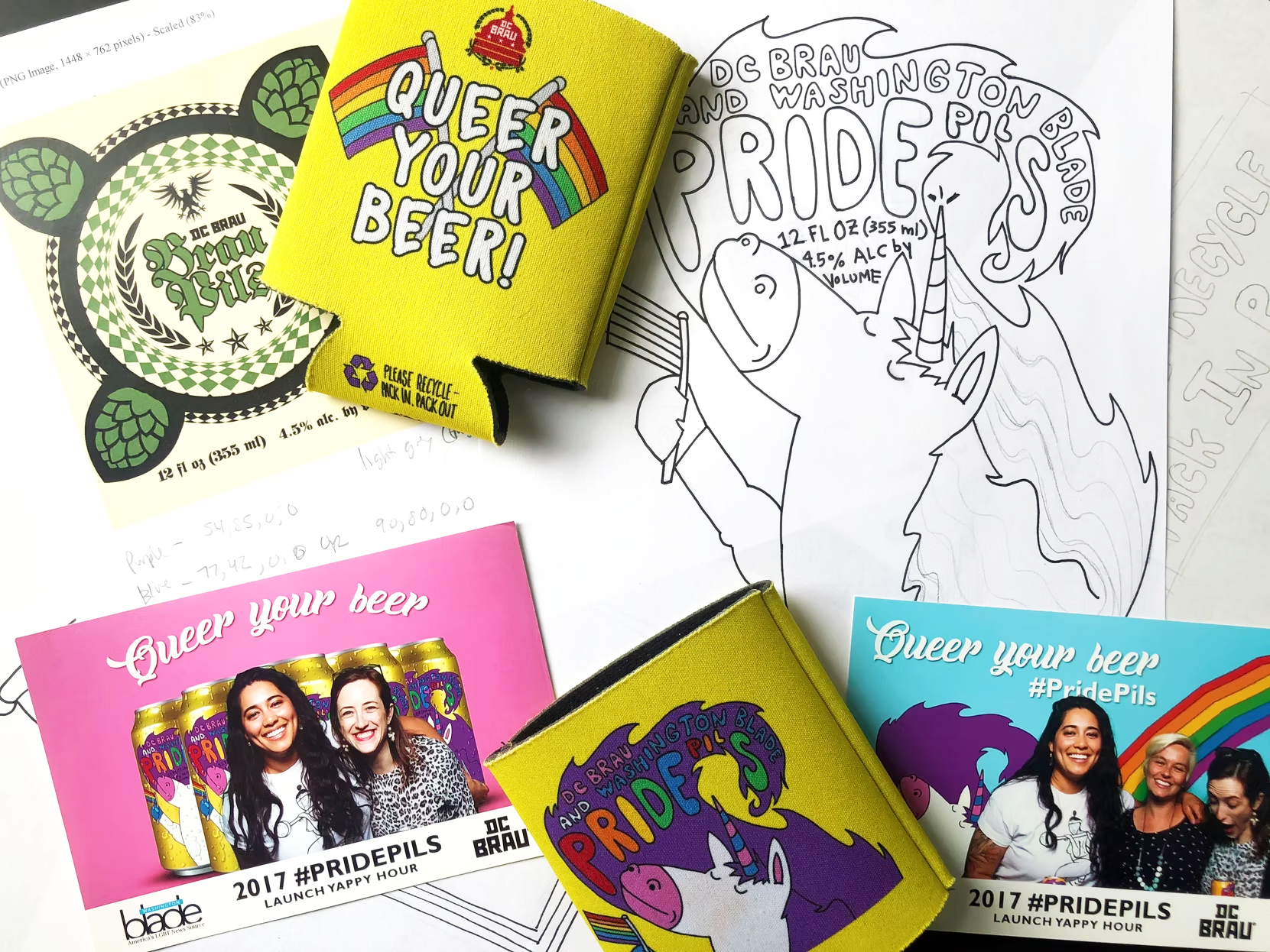 In March 2017 local beer company DC Brau and the oldest LGBT news publication in the country, The Washington Blade, came together to hold a design contest for a limited edition beer that would be released during Pride month. I submitted the winning illustration; an unapologetically proud unicorn. I came up with the catchphrase "Queer Your Beer" that was added to various promotional materials. I also designed the full page announcement in the print edition of The Blade. As a queer woman myself, this design was especially meaningful.